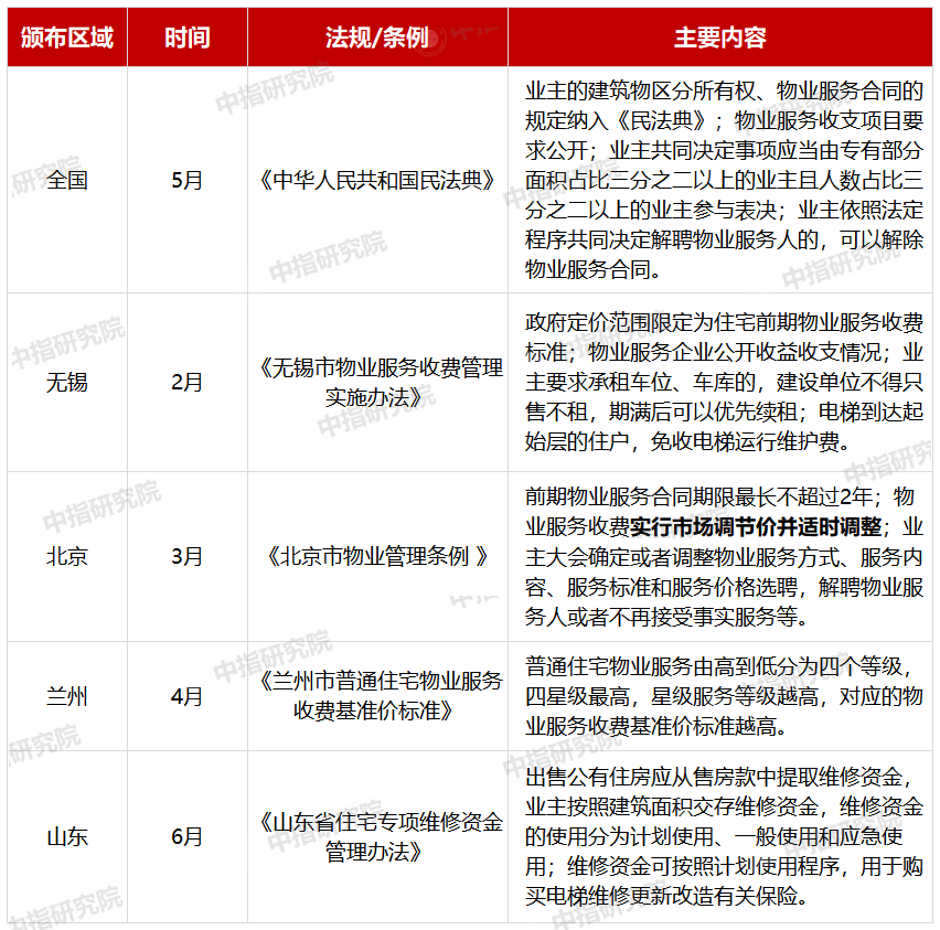 疫情防控下,央视多次点赞物业行业,另2020上半年,国家及地方陆续出台多项法律法规。其中,5月出台的《中华人民共和国民法典》从不同角度对物业管理进行了一系列规范和调整,以国家基本法律形式确认了物业管理的社会地位,也意味着物业管理已融入社会领域的方方面面,成为不可或缺的新兴产业。