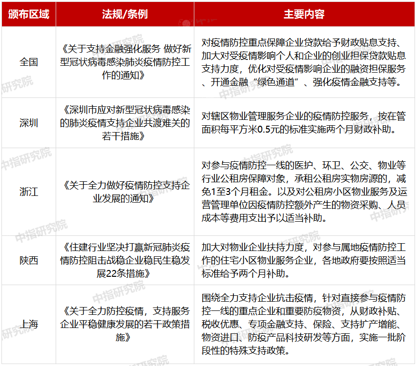 表:疫情期间物业服务企业相关利好政策