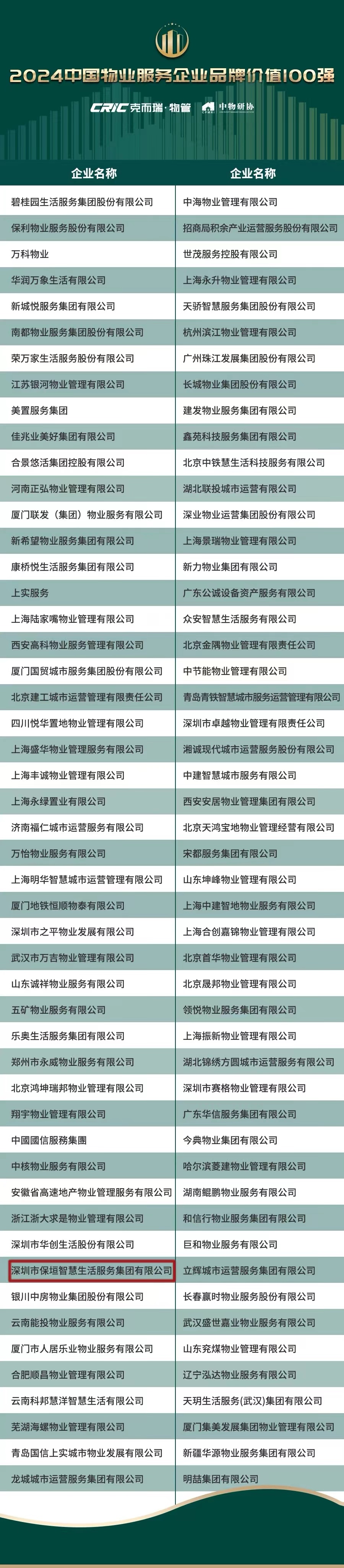 △ 2024中国物业服务企业品牌价值100强